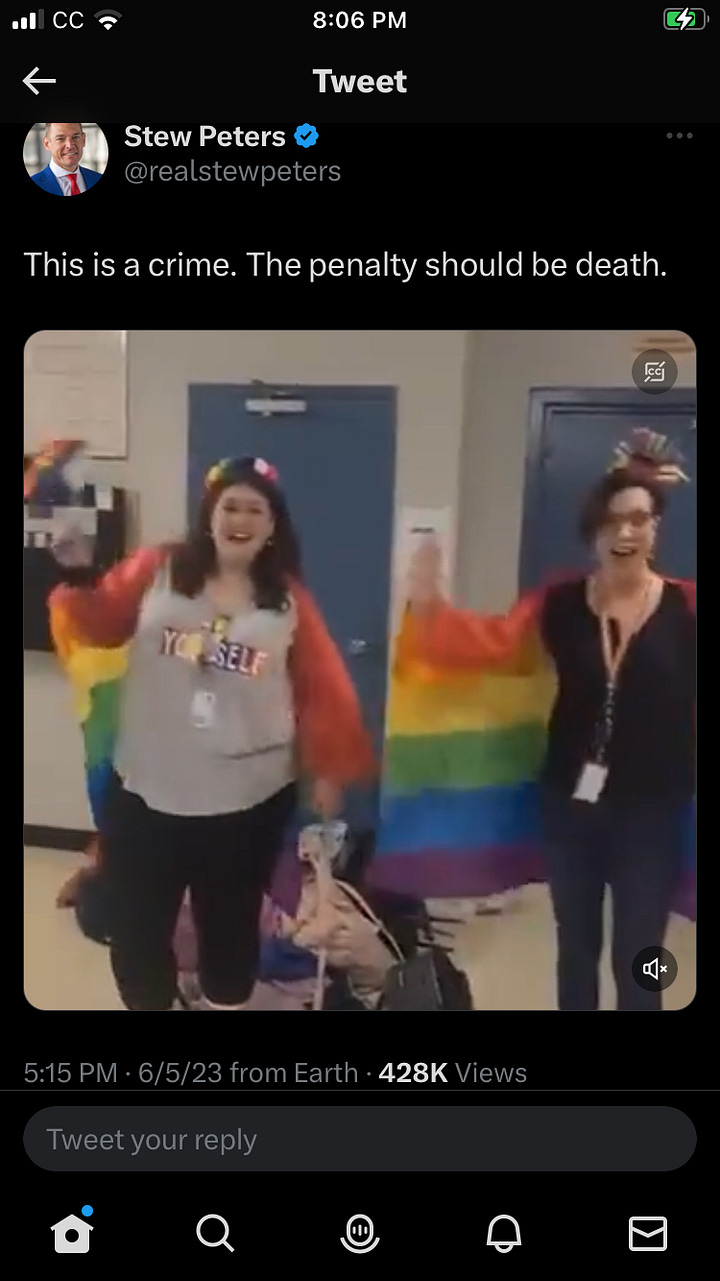 According to Dr. Gregory Stanton, the world’s foremost leader on genocide, such horrors always come in stages – ten stages, in fact. Holocausts develop over time in an identifiable progression, and the same progression is evident in the study of crimes against children and persecution of minorities, especially when based on sexual orientation or gender identification. I have come to the horrible conclusion that gross and intentional disinformation about the latter is leading to the former – and if we do not immediately and irrevocably change course, then we are headed toward a humanitarian disaster of our own making.