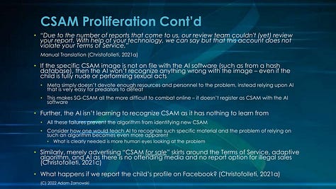 Again, one can see the problem that’s obvious with the anti-trafficking and “child safety” industries: they spend loads of money simply to not do anything to address the issue they claim to be against. Yet as we’ll see, this is merely the window dressing — this is what Meta’s control of the internet is being laundered as.