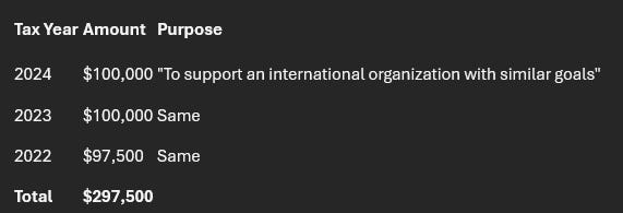There’s a reason why I listed the 990 tax forms of many so-called “anti-trafficking” organizations, including NCOSE, in the appendices of Jörmungandr, and you’re about to see why. Many of these organizations functioned more as organized crime slush funds for influence and PSYOP operations than as traditional non-profit organizations long before the Trump regime took power, and the problem is worse now than it ever was in the past. Even otherwise well-meaning organizations and activists may turn to less-than-reputable grant sources in such an environment — sources that, at best, come with strings attached. I know of several former close colleagues who have made such deals with the devil.