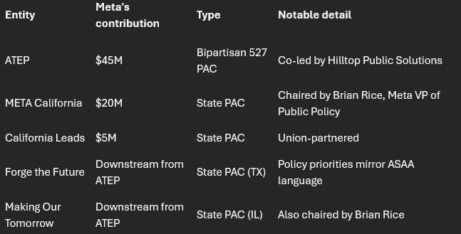 Meta poured over $70 million into state-level super PACs and structured every one to avoid the FEC’s centralized, searchable database: